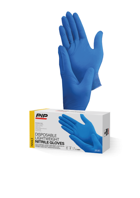 NOVA 3® Blue nitrile disposable gloves, textured palm, 3 mil/0.08mm, 24cm, Food contact, S/XXL, powder free, 100 per box, 1000 per case.
