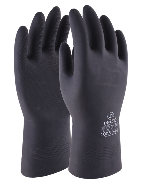 33 cm rukavice vyrobené z neoprénu a gumovej zmesi, ktorá poskytuje vynikajúcu odolnosť a ochranu proti širokej škále rozpúšťadiel a chemikálií. Podšívka z bavlnených vločiek pre zvýšenie absorpcie vlhkosti a pohodlia používateľa. Protišmyková reliéfna úprava PowerGrip™ s včelieho plástu vytvára prísavný úchop pre mokré aj suché použitie.